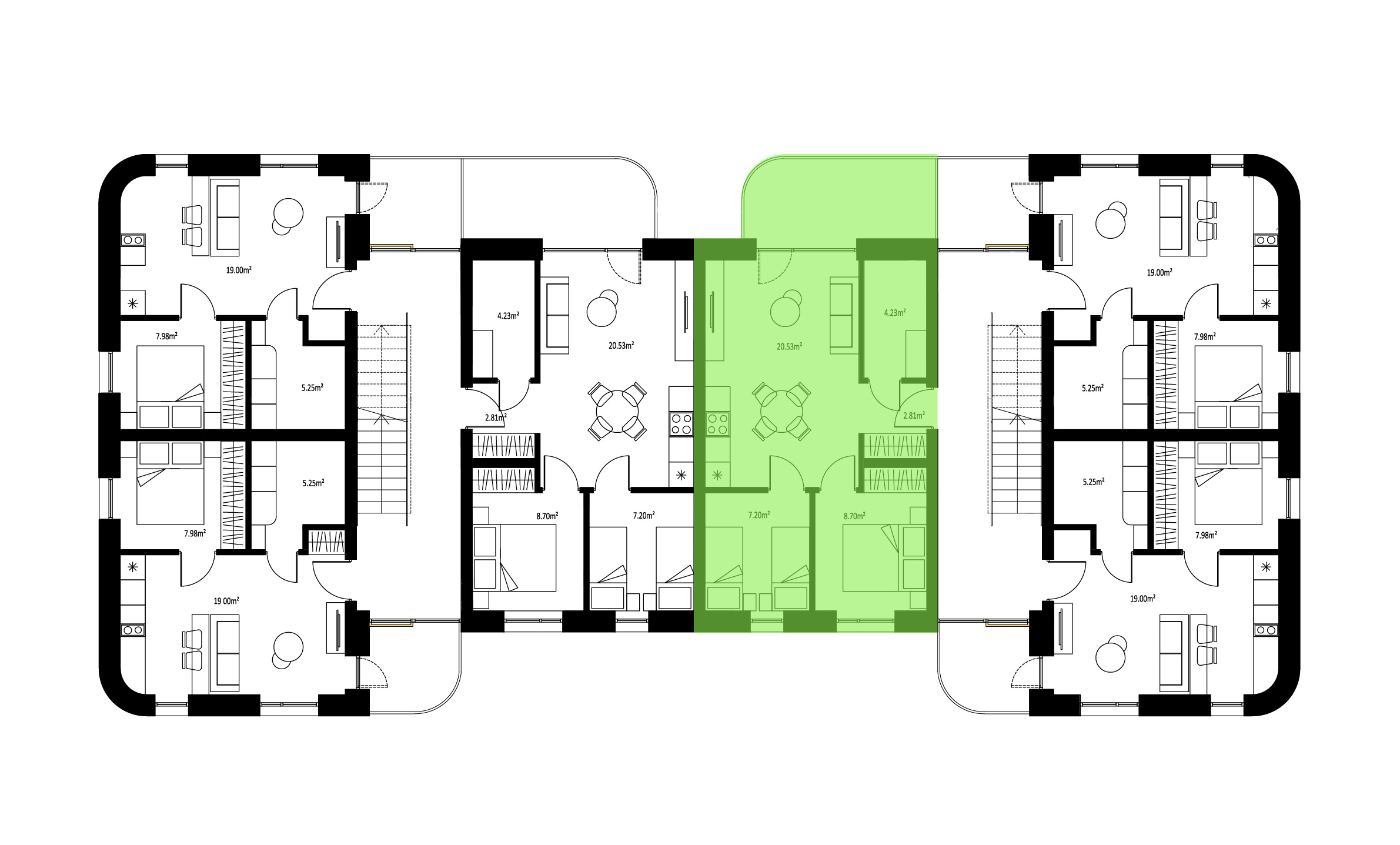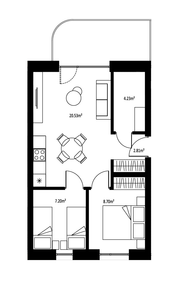 Trijų kambarių butai labai tiks žmonėms, norintiems šiek tiek didesnes erdves. Tokio išplanavimo bute rasite sujungtą virtuvės, valgomojo ir svetainės zoną, visiškai atskirą miegamąjį, vonios kambarį ir papildomą kambarį, kurį galėsite išnaudoti kaip darbo kambarį arba kaip atskirą vaikų kambarį arba priimti komfortiškai pailsėti draugų šeimą.