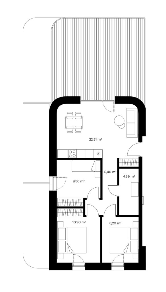 Keturių kambarių butai puikai pritaikyti žmonėms, mėgstantiems didesnes erdves ar turintiems didesnę šeimą. Tokio išplanavimo bute rasite sujungtą virtuvės, valgomojo ir svetainės zoną, visiškai atskirą miegamąjį, vonios kambarį, balkoną ir net 2 papildomus kambarius, kuriuos galėsite panaudoti kaip vaikų, darbo ar pasikviesti pasisvečiavimui didesnę draugų kompaniją.