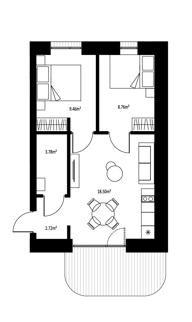 Trijų kambarių butai labai tiks žmonėms, norintiems šiek tiek didesnės erdvės. Tokio išplanavimo bute rasite sujungtą virtuvės, valgomojo ir svetainės zoną, visiškai atskirą miegamąjį, vonios kambarį ir papildomą kambarį, kurį galėsite išnaudoti kaip darbo kambarį arba kaip atskirą vaikų kambarį arba priimti komfortiškai pailsėti draugų šeimą.