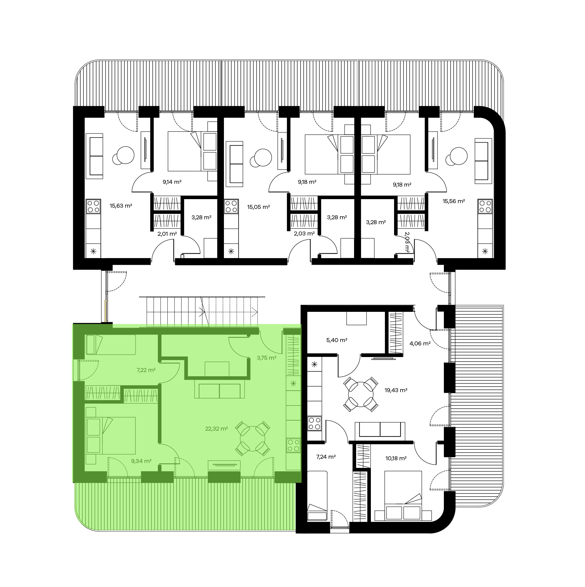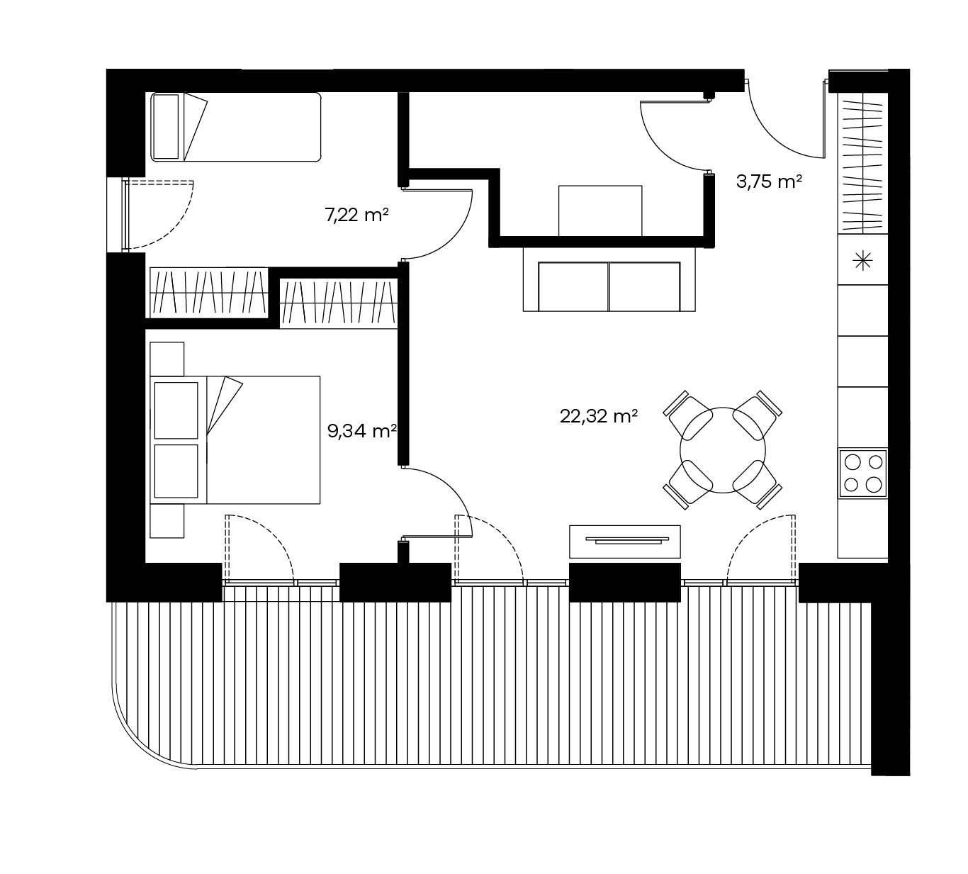 Trijų kambarių butai labai tiks žmonėms, norintiems šiek tiek didesnės erdvės. Tokio išplanavimo bute rasite sujungtą virtuvės, valgomojo ir svetainės zoną, visiškai atskirą miegamąjį, vonios kambarį ir papildomą kambarį, kurį galėsite išnaudoti kaip darbo kambarį arba kaip atskirą vaikų kambarį arba priimti komfortiškai pailsėti draugų šeimą.